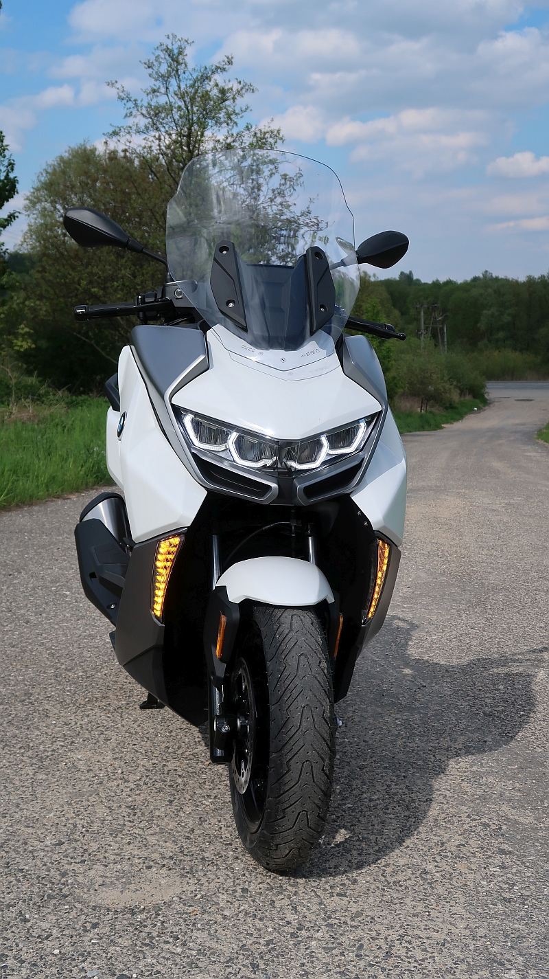Skuter C400 GT jest dosyć zwarty i sporo krótszy niż C650 GT, a więc wyższe osoby nie będą mogły wysunąć do przodu nóg by poczuć się jak na Harleyu
