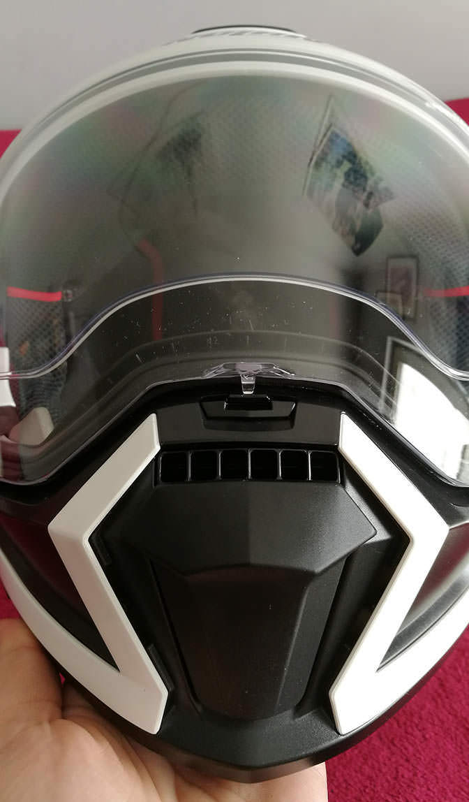 Ale w porównaniu do 99% szczękowców ten Nolan ma tą przewagę, że po zdjęciu szczęki nadal mogę używać zwykłego wizjera podczas jazdy bez używania blendy. W zwykłym szczękowcu gdy szczeka szła do góry to razem z wizjerem i w tym momencie można było tylko podczas jazdy przysłonić oczy blendą przeciwsłoneczną lub okularami.